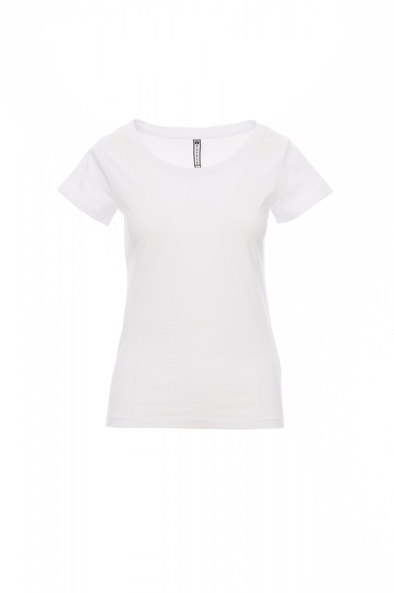T-SHIRT_MANICA CORTA_T-shirt manica corta sfiancata da donna con girocollo ampio, basso misto spandex da 1.2 cm, maniche corte, strette e cucitura laterale per una vestibilità più precisa, cuciture a due aghi su spalle e retro collo e nastratura in cotone.