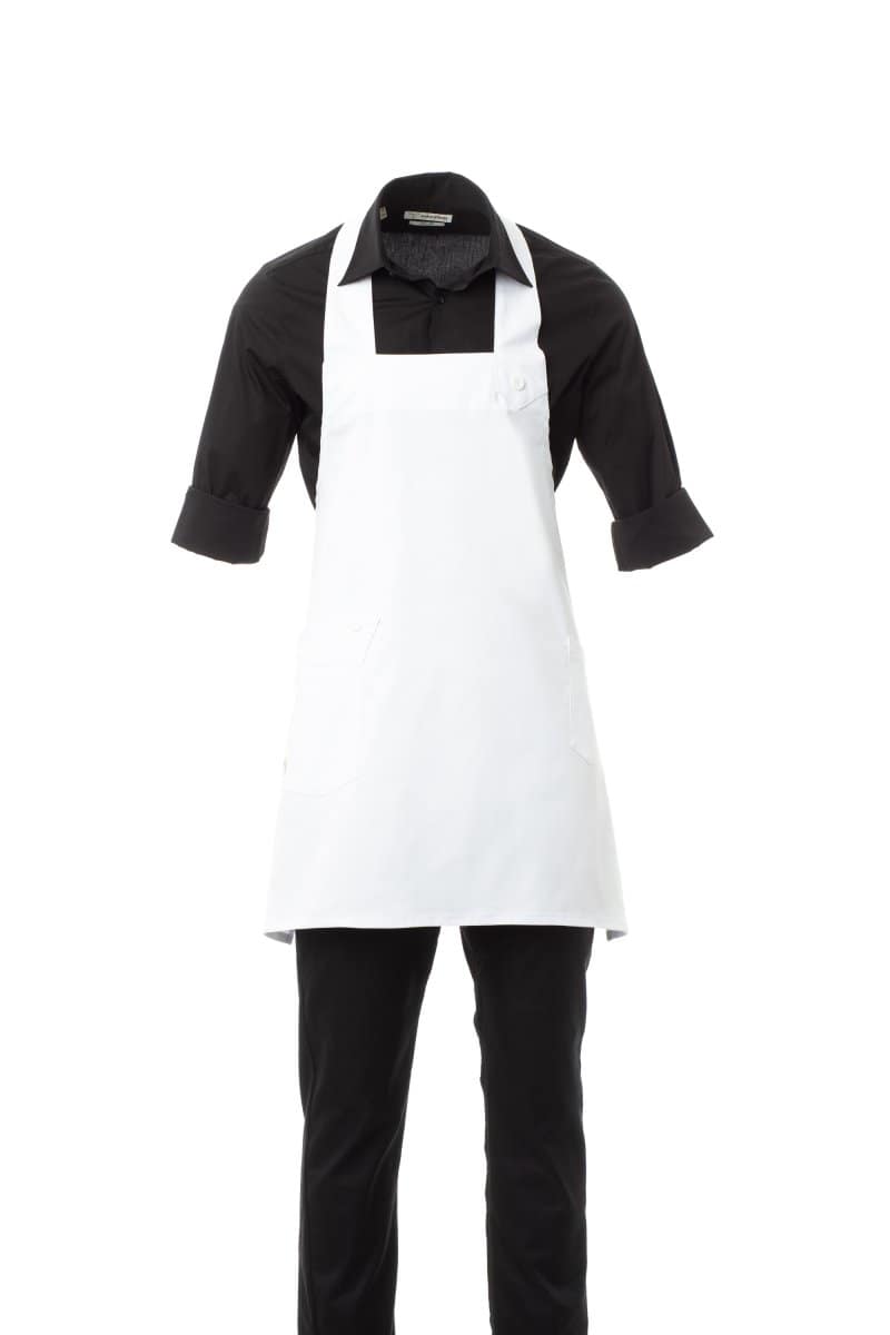 GREMBIULI_GREMBIULE PETTORINA_Grembiule unisex, multifunzione, con pettorina regolabile con 2 bottoni sul retro collo, realizzato in twill di cotone e Lycra® T400®, con ottime proprietà elastiche e traspiranti. Presenta un taschino porta oggetti e una tasca più ampia, impreziosita da bottone. Misure: 80x70cm.