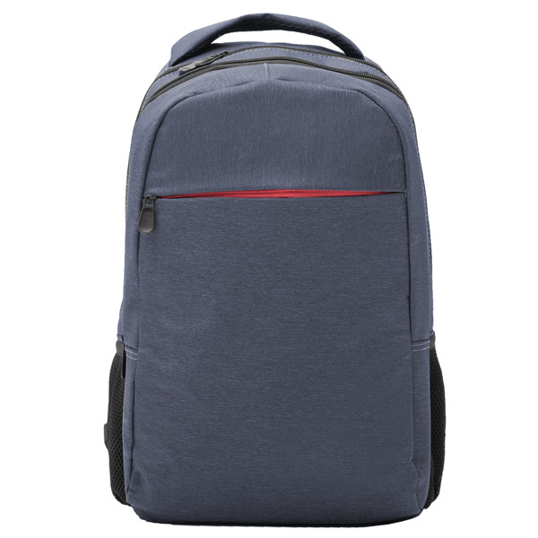 Zaino per computer portatile in poliestere con finitura mélange. Spallacci, schienale e manici imbottiti. Doppio scomparto anteriore e tasche laterali. Etichetta rimovibile.