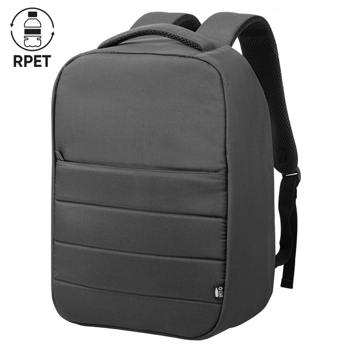 zaino in RPET 300D_x000d_ sistema di chiusura sul retro antitaccheggio_x000d_ tasca interna imbottita porta pc/tablet_x000d_ fascia trolley posteriore_x000d_ retro e spallacci imbottiti_x000d_ laptop fino a 15