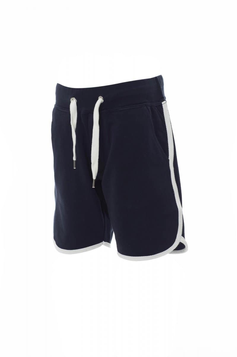 BERMUDA_SPORTIVO_Bermuda bambino in felpa, elastico e coulisse in vita, patta con zip, due tasche frontali e bordino di finitura a contrasto.