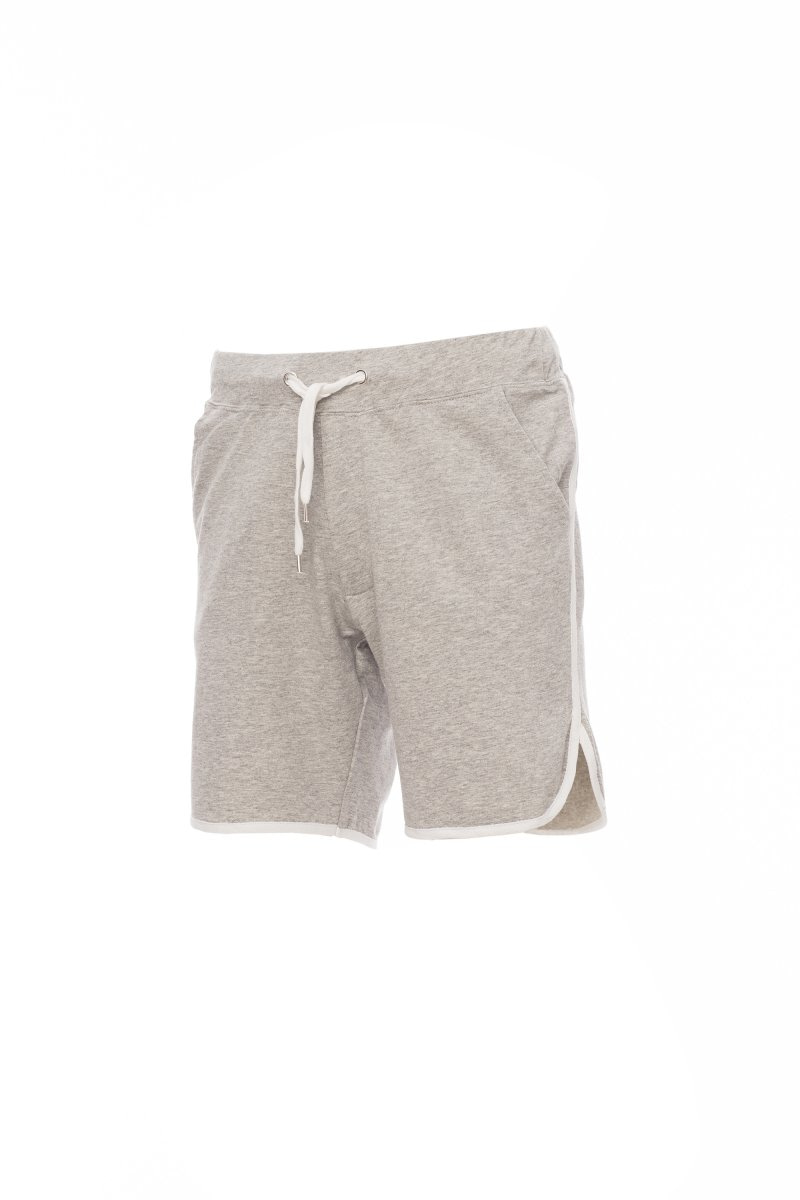 BERMUDA_SPORTIVO_Bermuda uomo in felpa, elastico e coulisse in vita, patta con zip, due tasche frontali e bordino di finitura a contrasto.