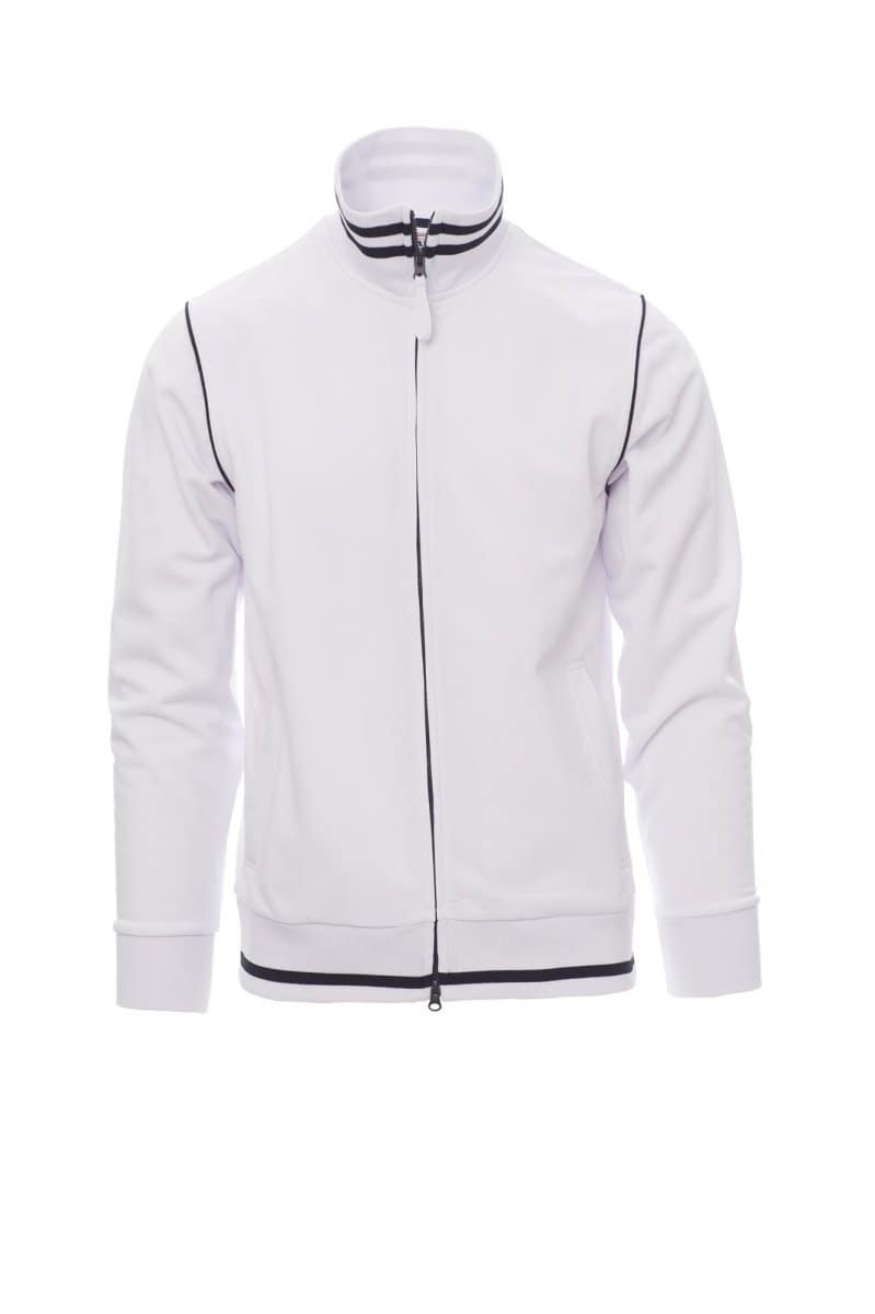FELPE_FULL ZIP_Felpa da uomo, zip intera a contrasto, coperta, in plastica con doppio cursore in metallo. Colletto e vita in rib con righe a contrasto, polsini in costina elasticizzata, piping nel giromanica, due tasche laterali con zip, cuciture rinforzate, lavorazione esterna simil piquet per una maggiore traspirabilità del tessuto.