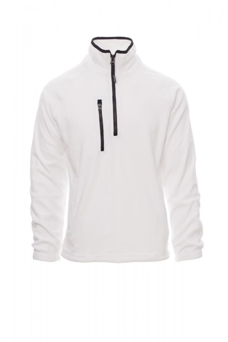 PILE_MEZZA ZIP_Pile, mezza zip 8mm in plastica nera, manica raglan, coulisse regolabile in vita, elastici stringi polso, due tasche con zip coperte, una tasca frontale con zip, collo con bordatura di rinforzo in contrasto, cuciture rinforzate.
