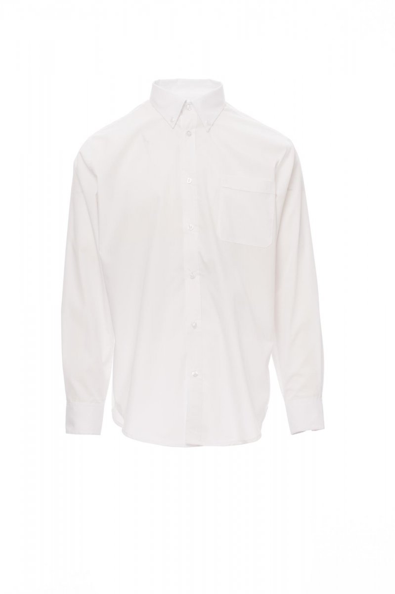 CAMICIE_MANICA LUNGA_Camicia uomo dal titolo finissimo pettinato, colletto modello botton down inglese, polso stondato a due bottoni e un'asola, cannoncino cucito a vista e bottoni perlati, una tasca lato cuore; dietro: carré liscio. Composizione: 65% POLIESTERE + 35% COTONE