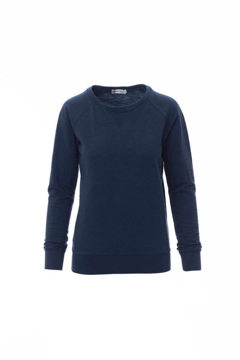 FELPE_GIROCOLLO_Felpa da donna con maniche raglan, collo ampio con rib elasticizzato, polsini e vita in rib elasticizzato.