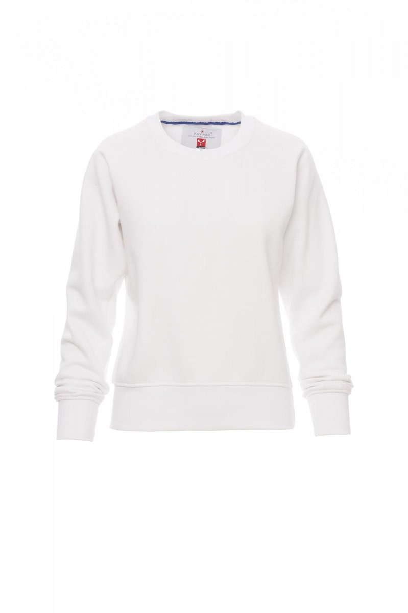 FELPE_GIROCOLLO_Felpa da donna girocollo, manica raglan, cucitura estetica a V al collo. Polsini e vita in costina elasticizzata, cuciture rinforzate.