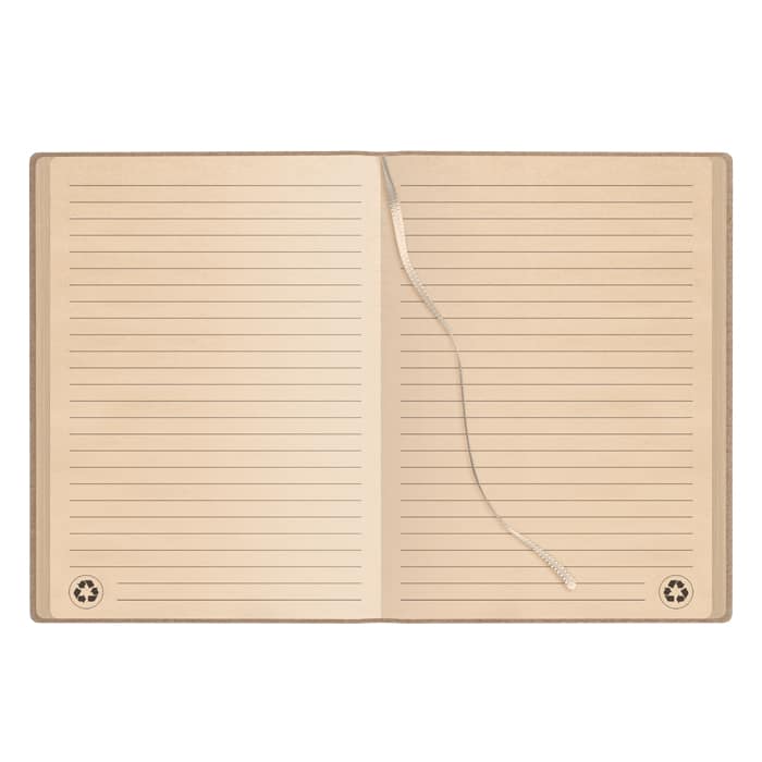 notes in carta riciclata 160 pagine interno a righe segna pagine ed elastico in tinta
