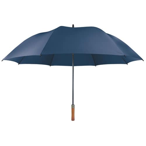 Ombrello con pulsante e manico in legno, tessuto è impermeabile. Disponibile nei colori navy, nero e pietra.