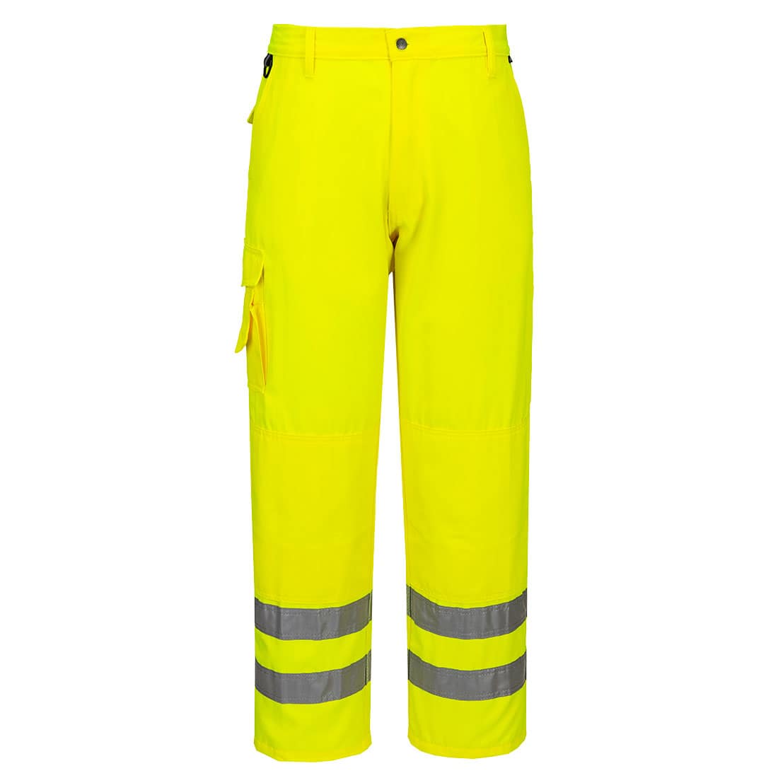 Conforme alle ultime normative EN ISO 20471, questi pantaloni hanno un design moderno con tasche per ginocchiere, tasca laterale altezza coscia e tasca porta cellulare; un elastico in vita li rende ancora più confortevoli.