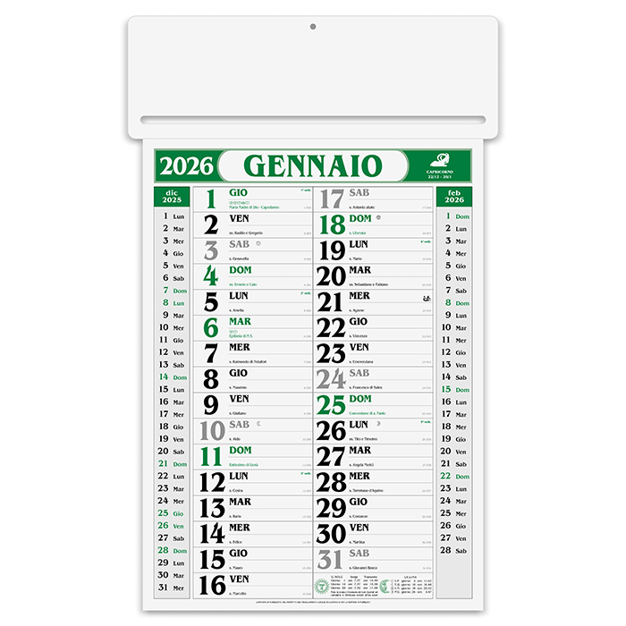 calendario: cm 34×53,5 ca