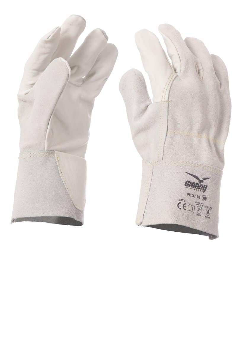 GUANTI IN PELLE_CON MANICHETTA 7CM_Guanto con palmo e dito indice in fiore bovino, dorso in pelle crosta bovina e manichetta in pelle crosta di bufalo da 7 cm. Protezione salvavena in fiore bovino ed elastico stringi polso. Cuciture in filato para-aramidico. Caratteristiche: morbido, robusto, resistente. Punti di forza: comfort, destrezza. Campi d’impiego: adatto a manipolazione di oggetti pesanti, spigolosi, ruvidi, abrasivi e caldi, per pulizia impianti, falegnameria e carpenteria metallica. Unità minima vendibile: 1 dozzina (12 paia).