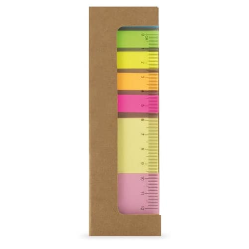 Contiene note, pennarelli colorati autoadesivi e righello da 12 cm.