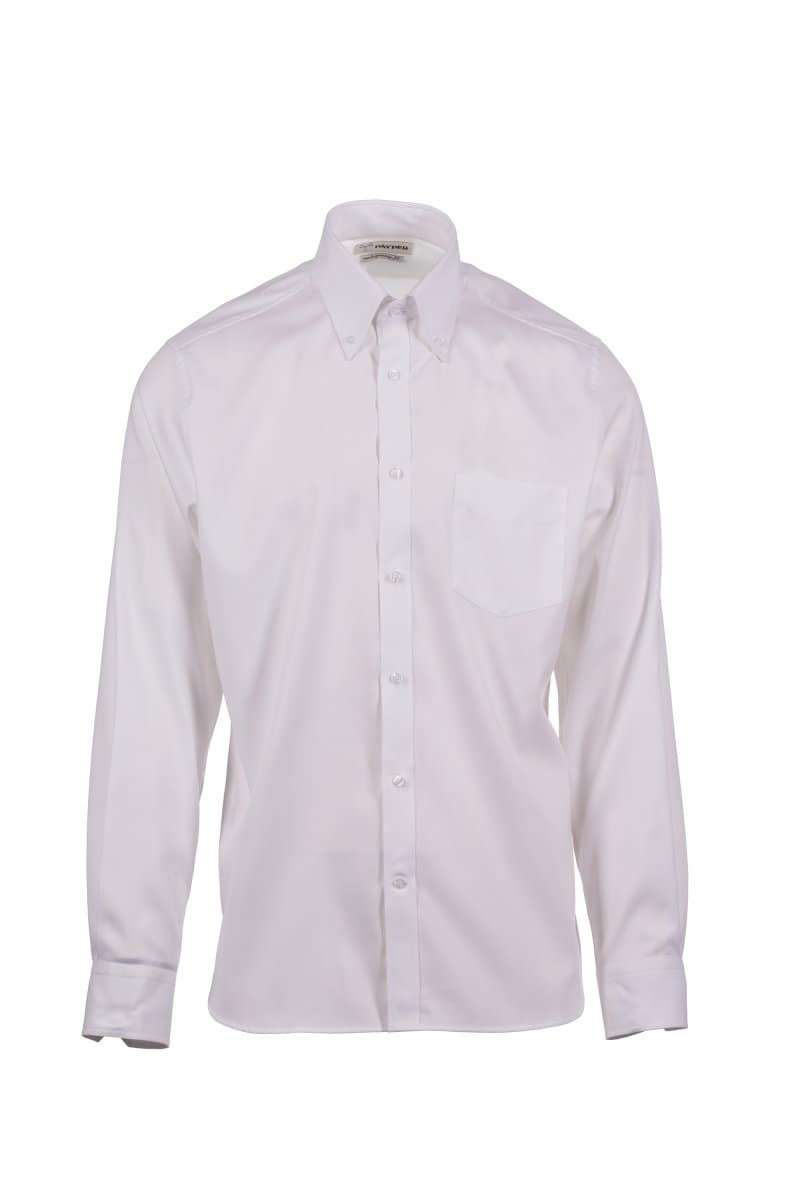 CAMICIE_MANICA LUNGA_Camicia manica lunga, contemporary fit. Collo button down. Cannoncino impunturato a vista. Bottoni effetto madreperla. 1 tasca al petto a toppa. Carré sul retro. Pinces di ripresa a metà schiena. Mosca di tessuto sui fianchi. Polsini smussati con 2 bottoni.