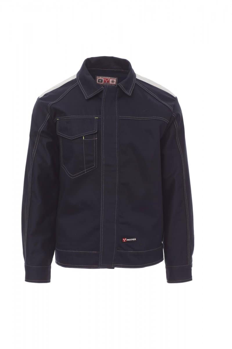 GIUBBOTTI_NO IMBOTTITO_Giacca non imbottita invernale con impunture a contrasto, inserti riflettenti su spalle e schiena; taglio slanciato modello jeans e chiusura frontale con bottoni in plastica a scomparsa; porta smartphone, porta badge staccabile e porta penna nella tasca al petto con patta e chiusura con velcro. Chiusura polso con bottone e vita regolabile con velcro.