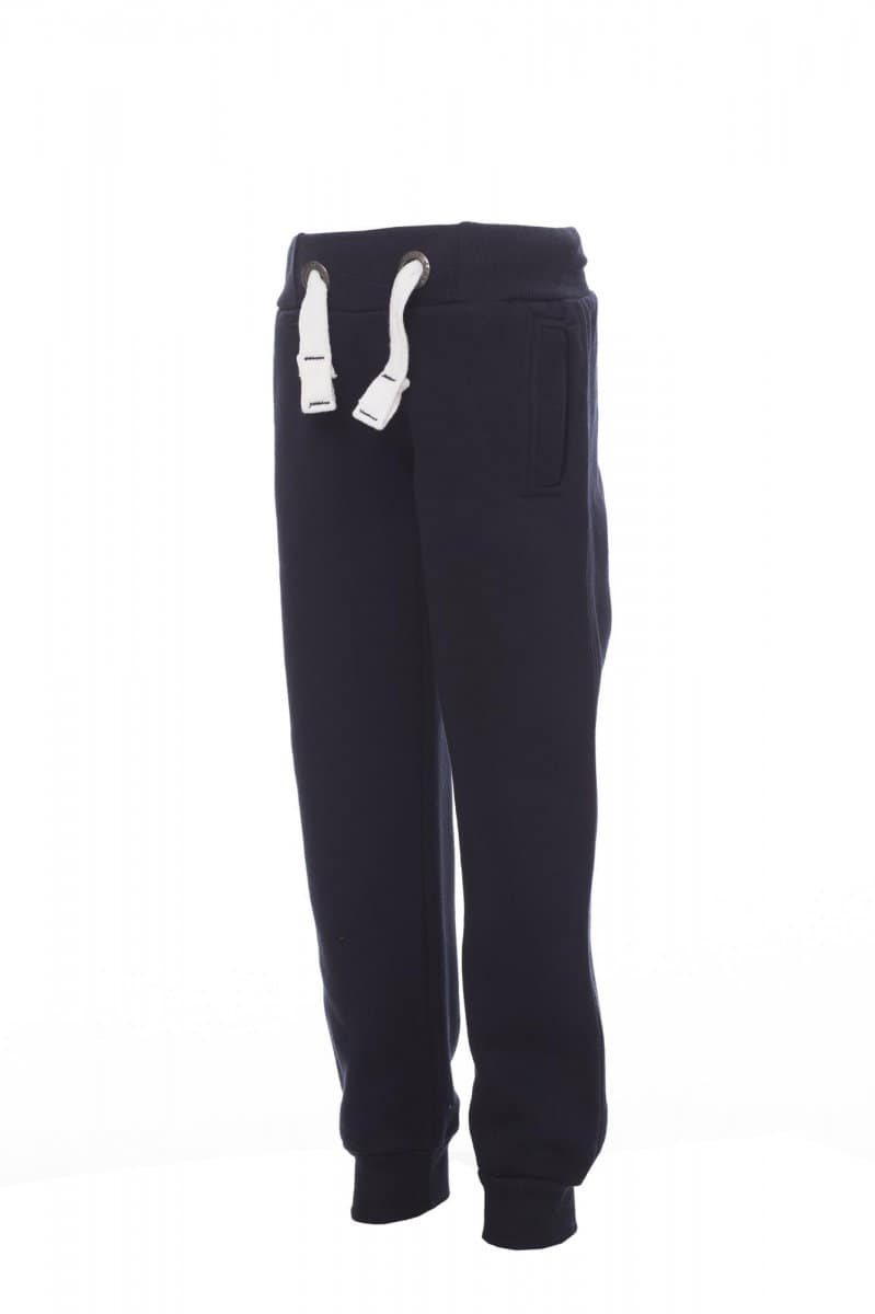 PANTALONI IN FELPA_SPORTIVO_Pantalone da bambino in felpa, rib elasticizzato in vita e a fondo gamba, zip con patta, coulisse bianca in corda con cuciture in contrasto e anelle in metallo, due tasche frontali con rib e un taschino dietro, patta con zip e cuciture rinforzate.