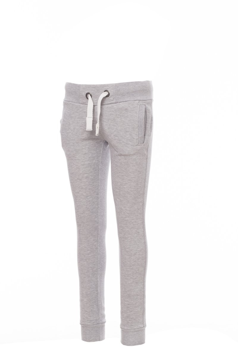 PANTALONI IN FELPA_SPORTIVO_Pantalone da donna in felpa, rib elasticizzato in vita e a fondo gamba, coulisse bianca in corda con cuciture in contrasto e anelle in metallo, due tasche frontali con rib e cuciture rinforzate.