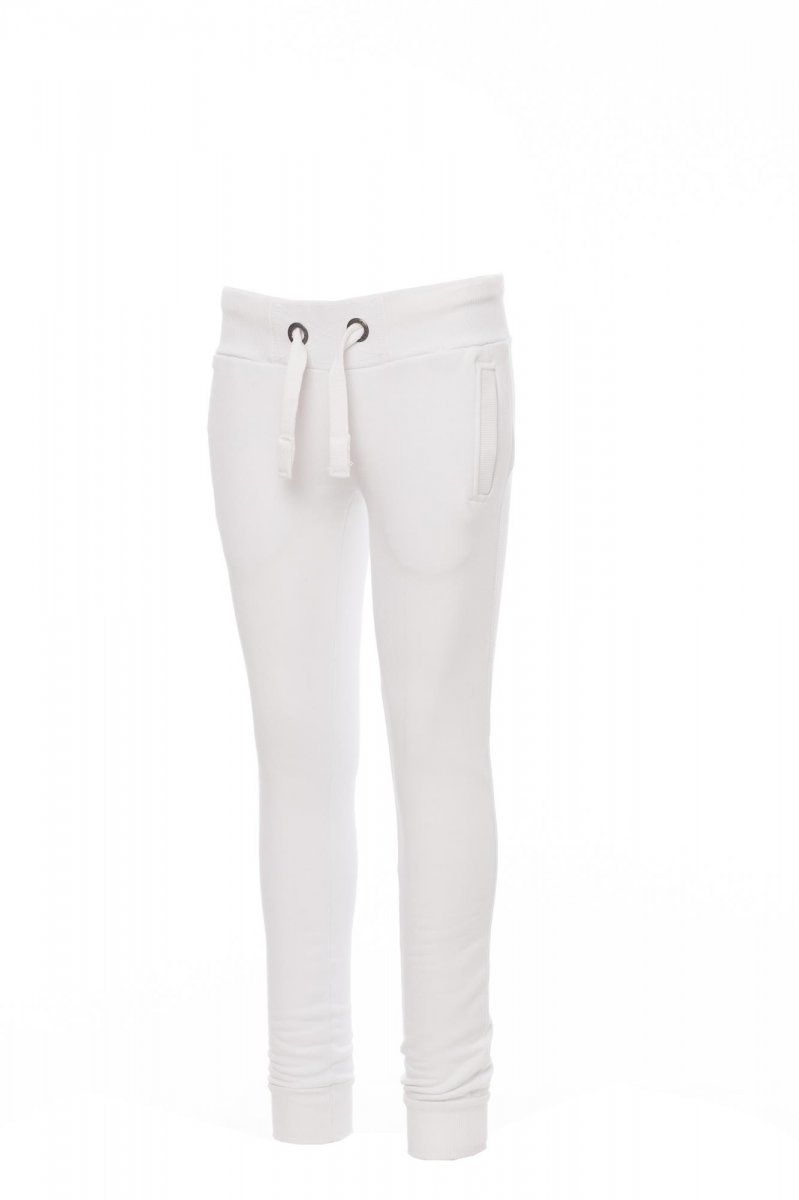 PANTALONI IN FELPA_SPORTIVO_Pantalone da donna in felpa, rib elasticizzato in vita e a fondo gamba, coulisse bianca in corda con cuciture in contrasto e anelle in metallo, due tasche frontali con rib e cuciture rinforzate.
