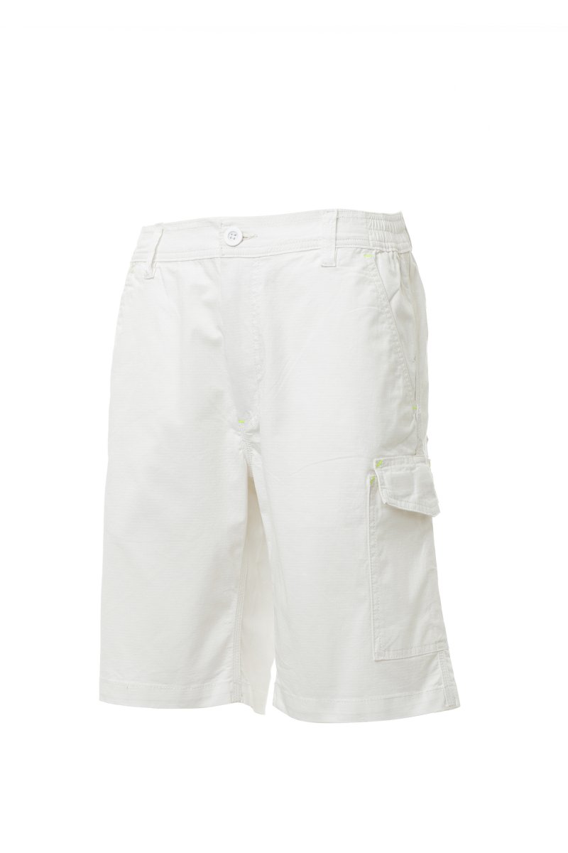 BERMUDA_CARGO_Bermuda realizzato in tessuto ripstop stretch, leggero, con passanti ed elastico in vita, chiusura patta con zip e bottone in cintura. Tasche anteriori a  taglio classico, con taschino porta monete nella tasca destra a capo indossato e un porta metro laterale. Tasca laterale sinistra con patta di chiusura LOCK SYSTEM. Due tasche posteriori, di cui una con patta e velcro. Cuciture a triplo ago.