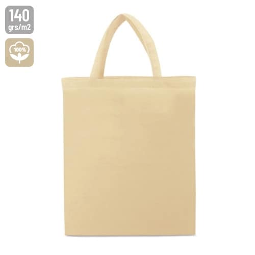 Borsa 100% cotone, con doppio manico corto. Comoda da portare nella mano
