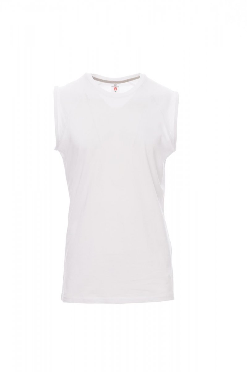 T-SHIRT_SENZA MANICHE_Canotta da uomo girocollo, manica raglan, colletto in costina misto spandex da 1.5 cm con cucitura ribattuta sul davanti, nastro di rinforzo da spalla a spalla in colore a contrasto visibile nel colletto, cuciture stretch.