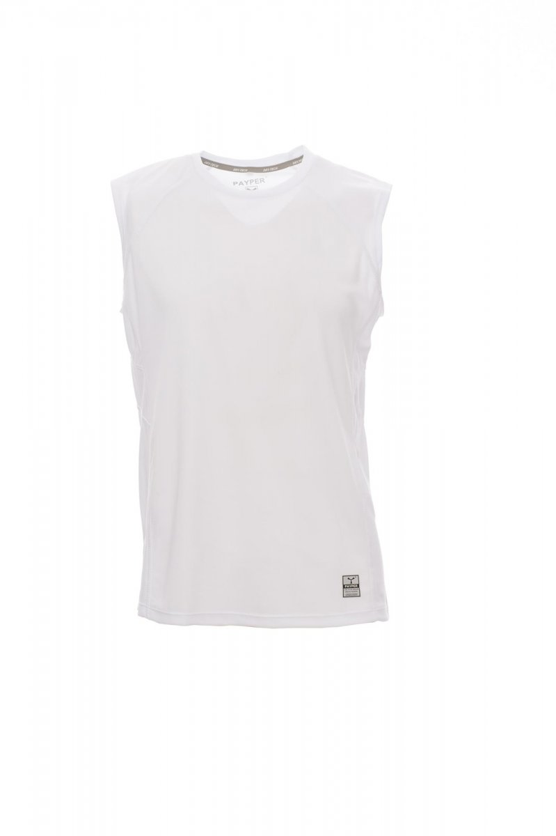 T-SHIRT_SENZA MANICHE_Canotta da uomo in tessuto dry-tech, doppia cucitura laterale per una migliore vestibilità, fondo sagomato e più lungo sul retro, inserto retroriflettente retro collo, nastratura del collo a contrasto, etichetta transfer.