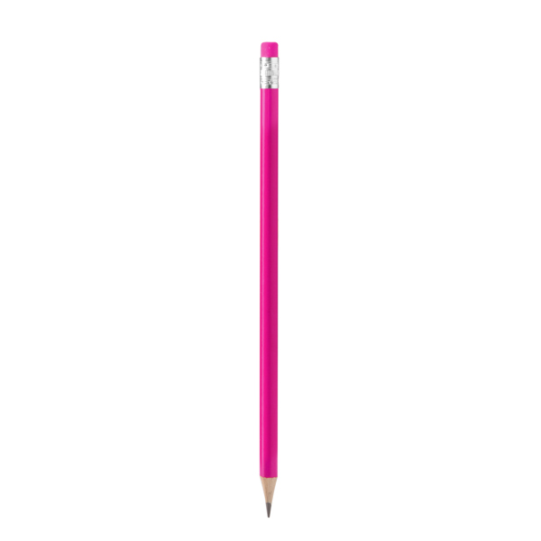 Matita tonda in legno. Ha una gomma all'estremità dello stesso colore del fusto.