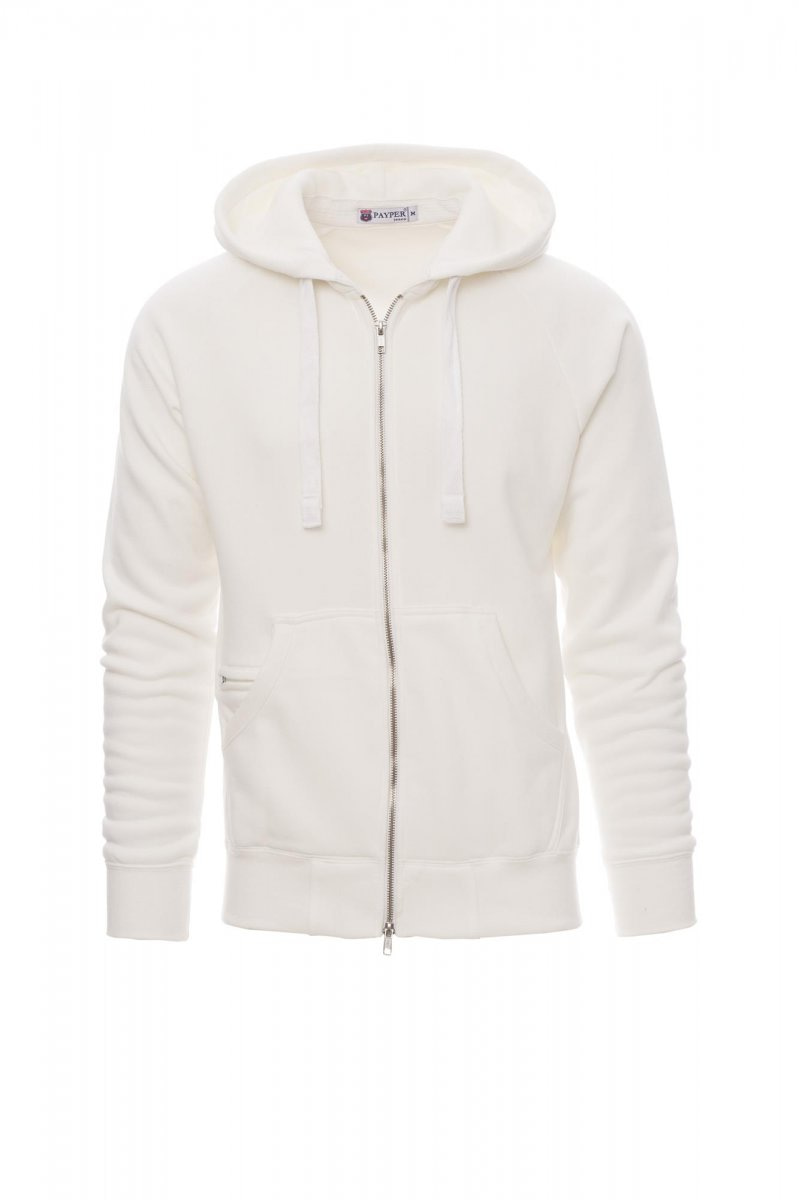 FELPE_FULL ZIP CON CAPPUCCIO_Felpa da uomo, zip intera di metallo doppio cursore, cappuccio e coulisse bianca in corda con cuciture in in tinta con la felpa e anelle in metallo, manica raglan, tasche a marsupio, taschino con zip e predisposizione per cavo mp3/cellulare, polsini e vita in costina elasticizzata, cuciture rinforzate. Effetto Melange bianco (nero per il Bordeaux).