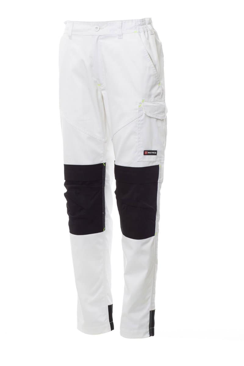 PANTALONI_CARGO_Pantalone unisex, multistagione con porta ginocchiere, elastici laterali e passanti in vita, chiusura con zip e bottone in plastica, due tasche anteriori a taglio classico, una tasca laterale LOCK SYSTEM, un porta metro e un porta smartphone, due tasche posteriori una aperta e una con patta e velcro, inserti ed impunture a contrasto, bande reflex su tasca posteriore, cuciture triple.