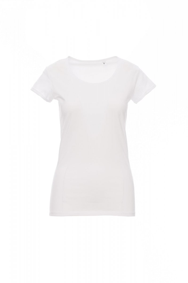 T-SHIRT_MANICA CORTA_T-shirt manica corta sfiancata da donna con girocollo leggermente ampio, colletto con bordino fine, maniche finite con fine risvolto a taglio vivo, cucita lateralmente. Neutra senza etichetta.